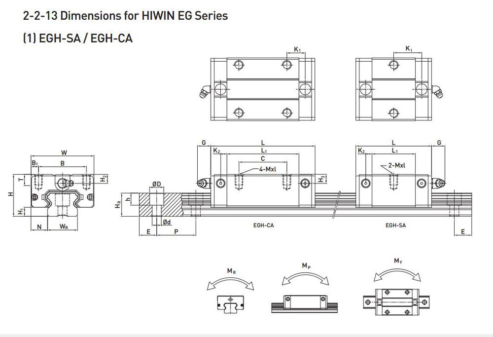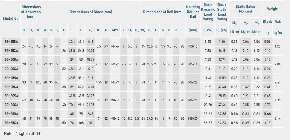 Thông số kỹ thuật con trượt EGH series: