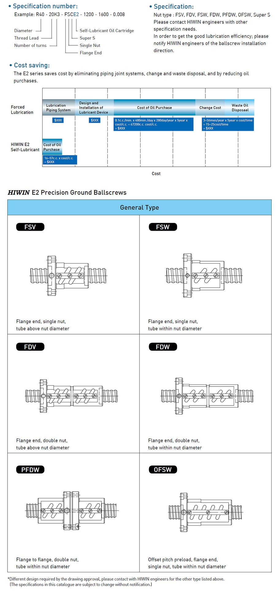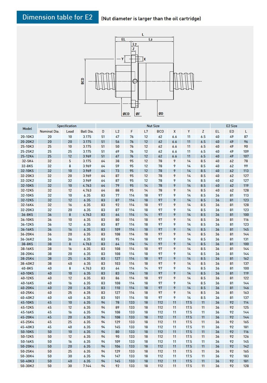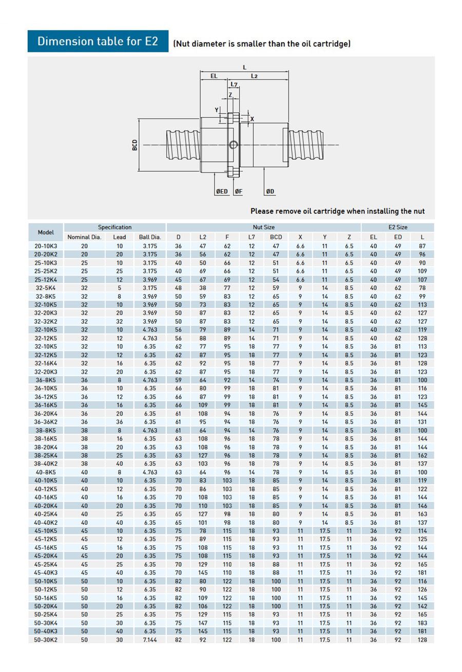 Việc tiếp chất bôi trơn có thể được thực hiện tốt ở tất cả các hướng nên không có hạn chế khi lắp ráp vít me bi dòng E2